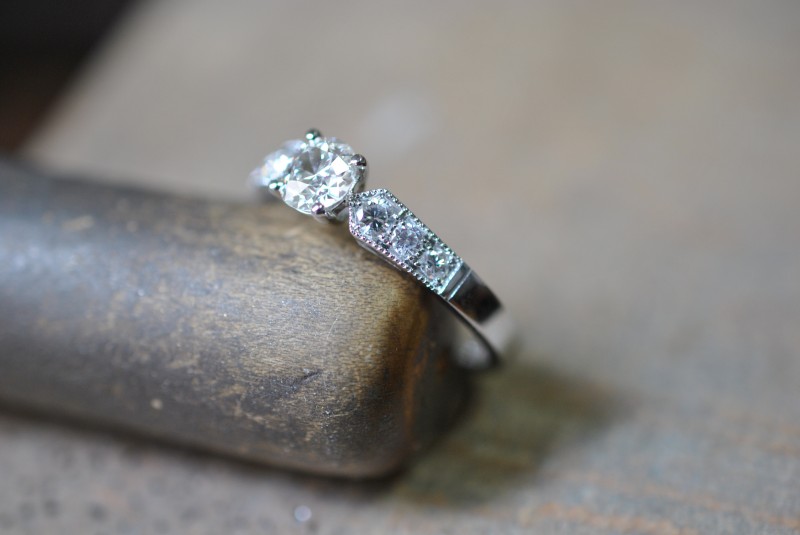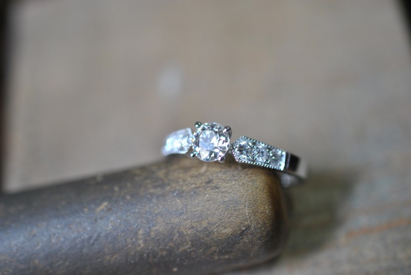 Il s'agit d'une bague fabriquée à la main avec les diamants de la cliente.