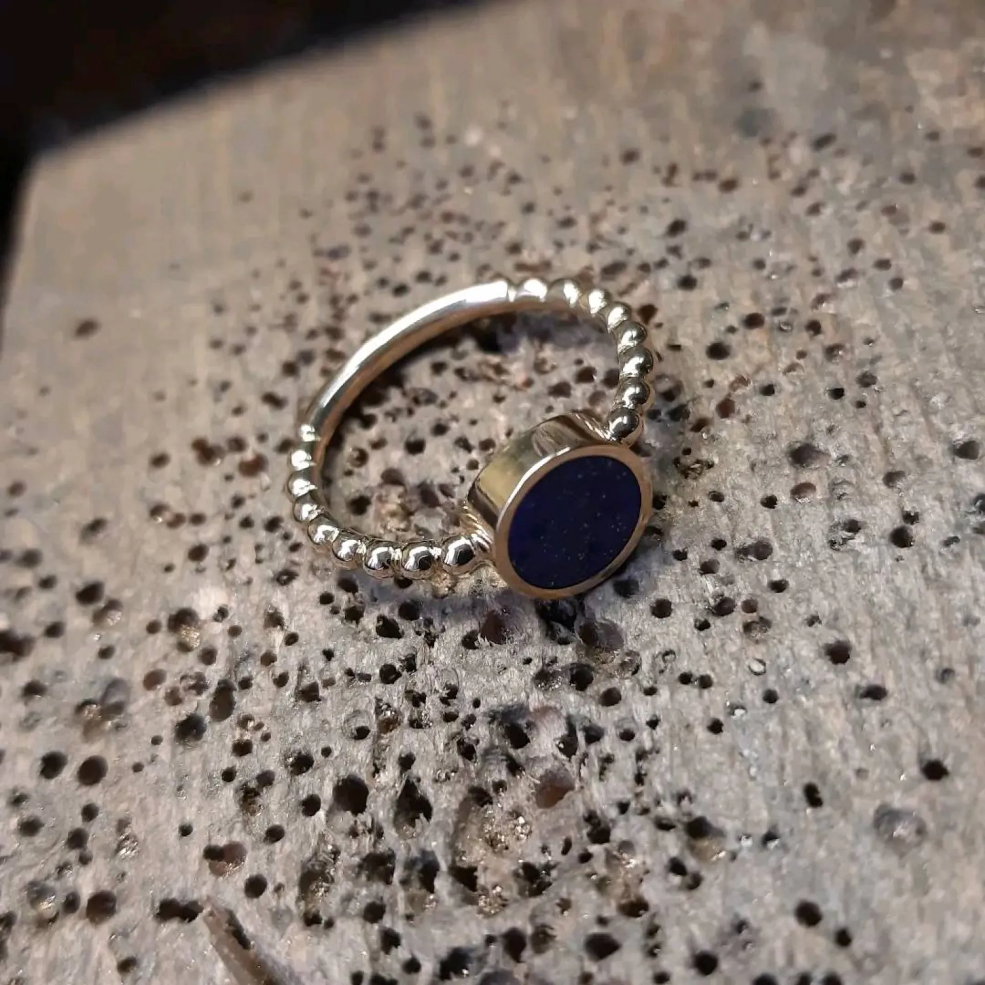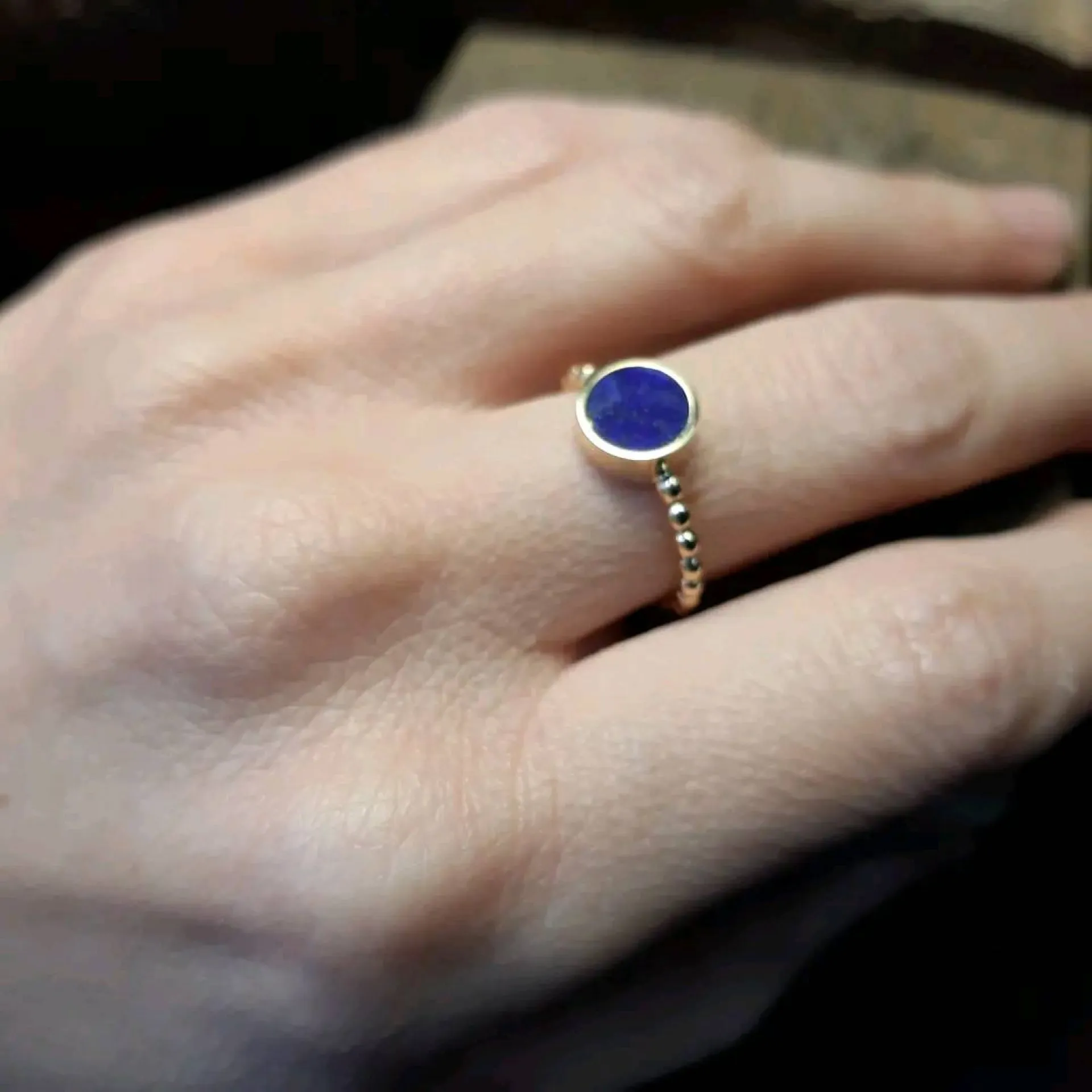 Bague en or lapis-lazuli perlées création unique à l'atelier de Bordeaux