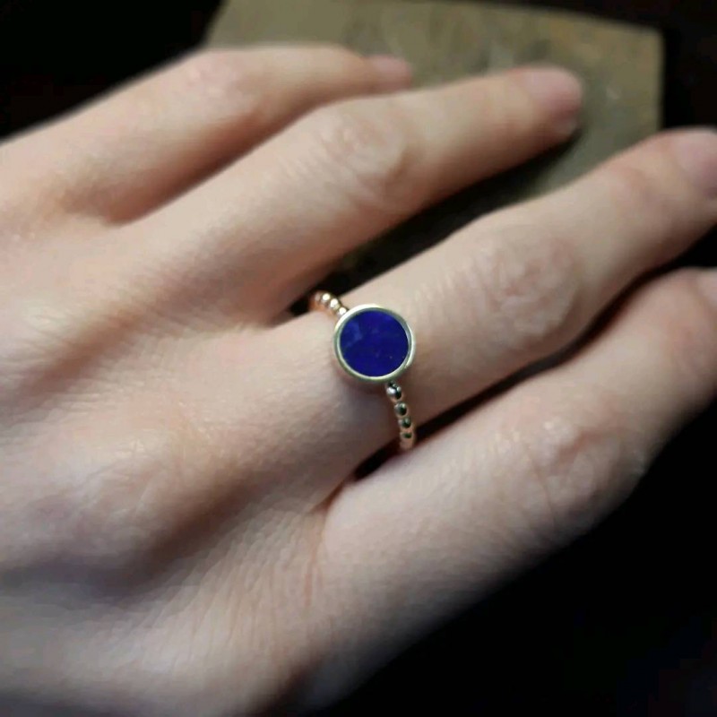 C'est une bague en or jaune 18ct avec un lapis-lazuli plat diamètre 5mm.