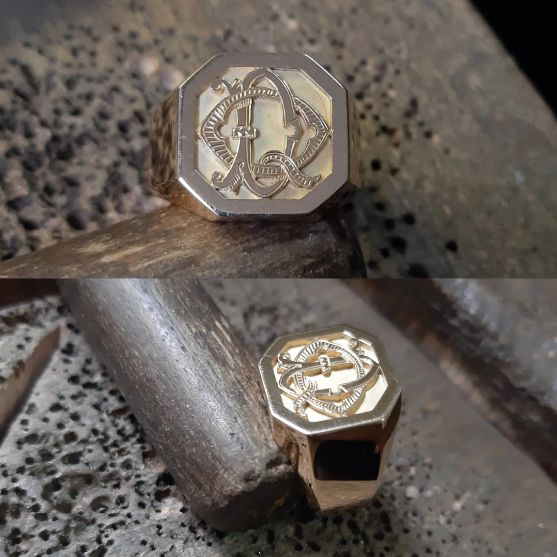 Parce ce que les hommes aussi ont droit à porter des bijoux, je vous propose ces quelques chevalières, bagues et alliances que j'ai réalisé à la main dans mon atelier situé à Bordeaux.