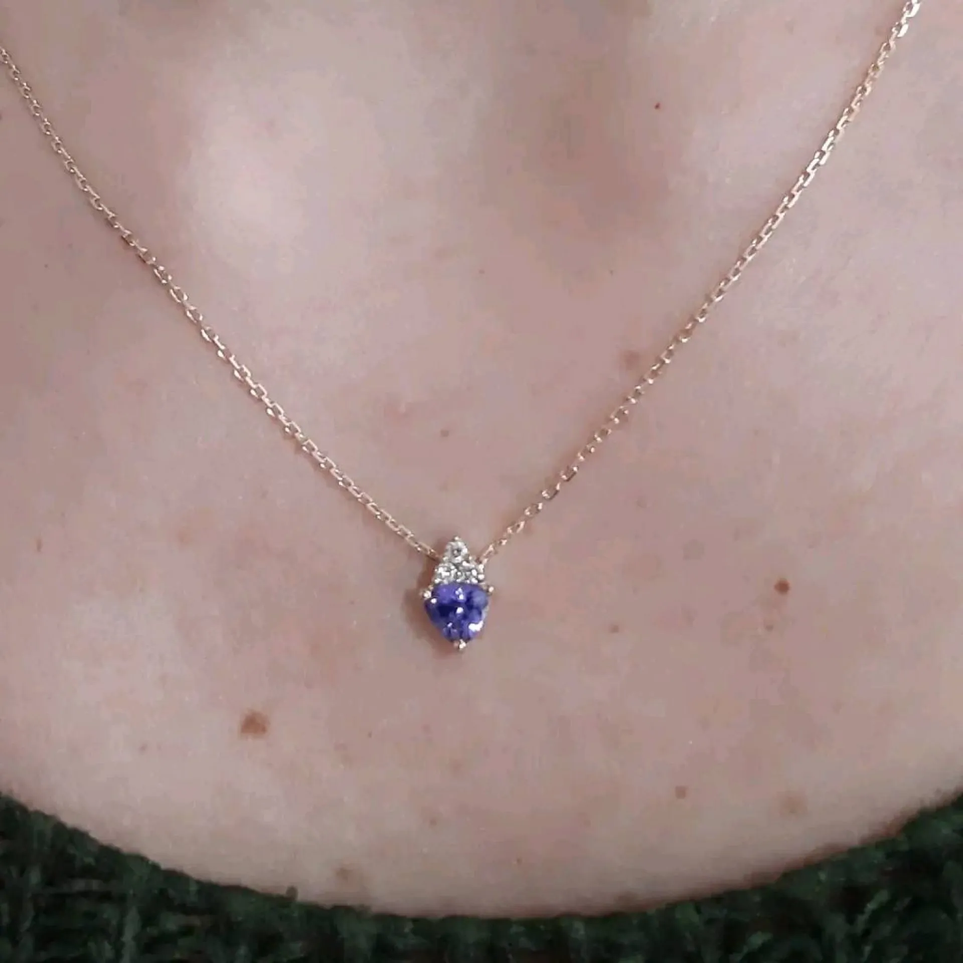 Je vous présente une de mes dernières création, ce collier-pendentif en or jaune 18ct avec une Tanzanite troïdia de 0ct80 et trois petits diamants.
