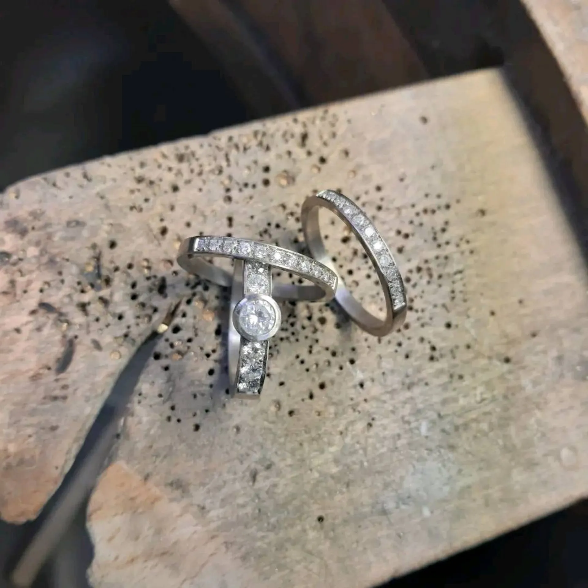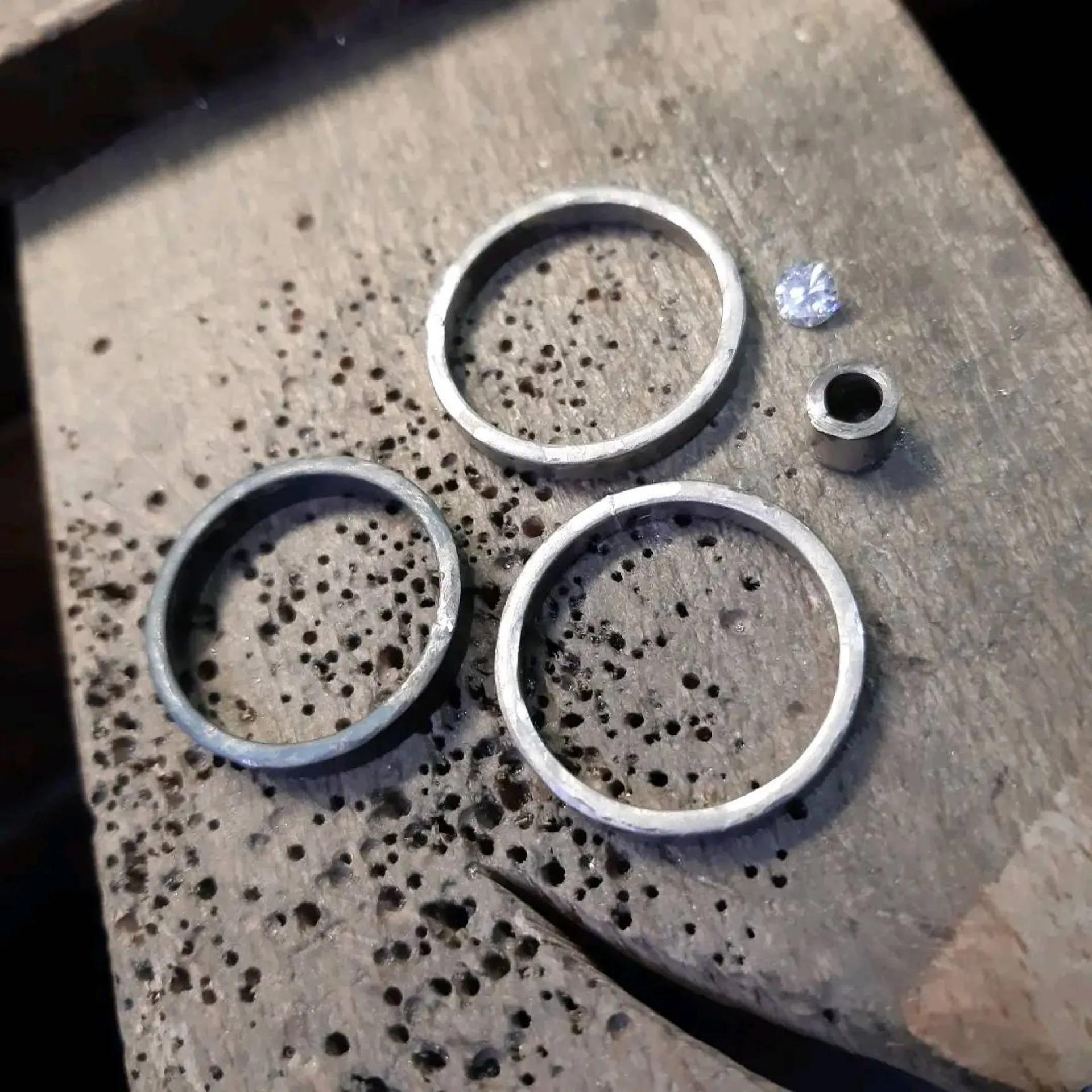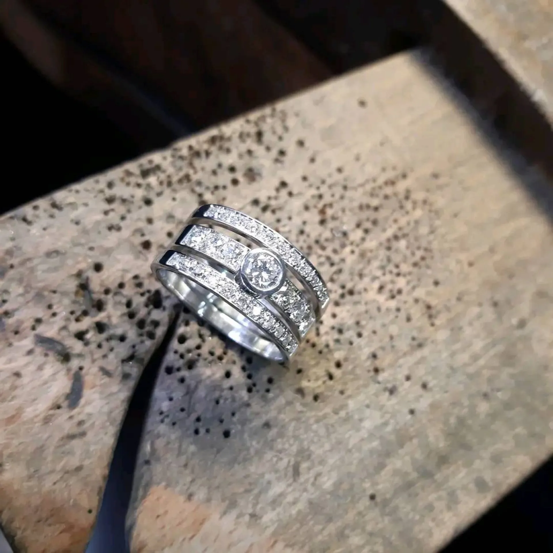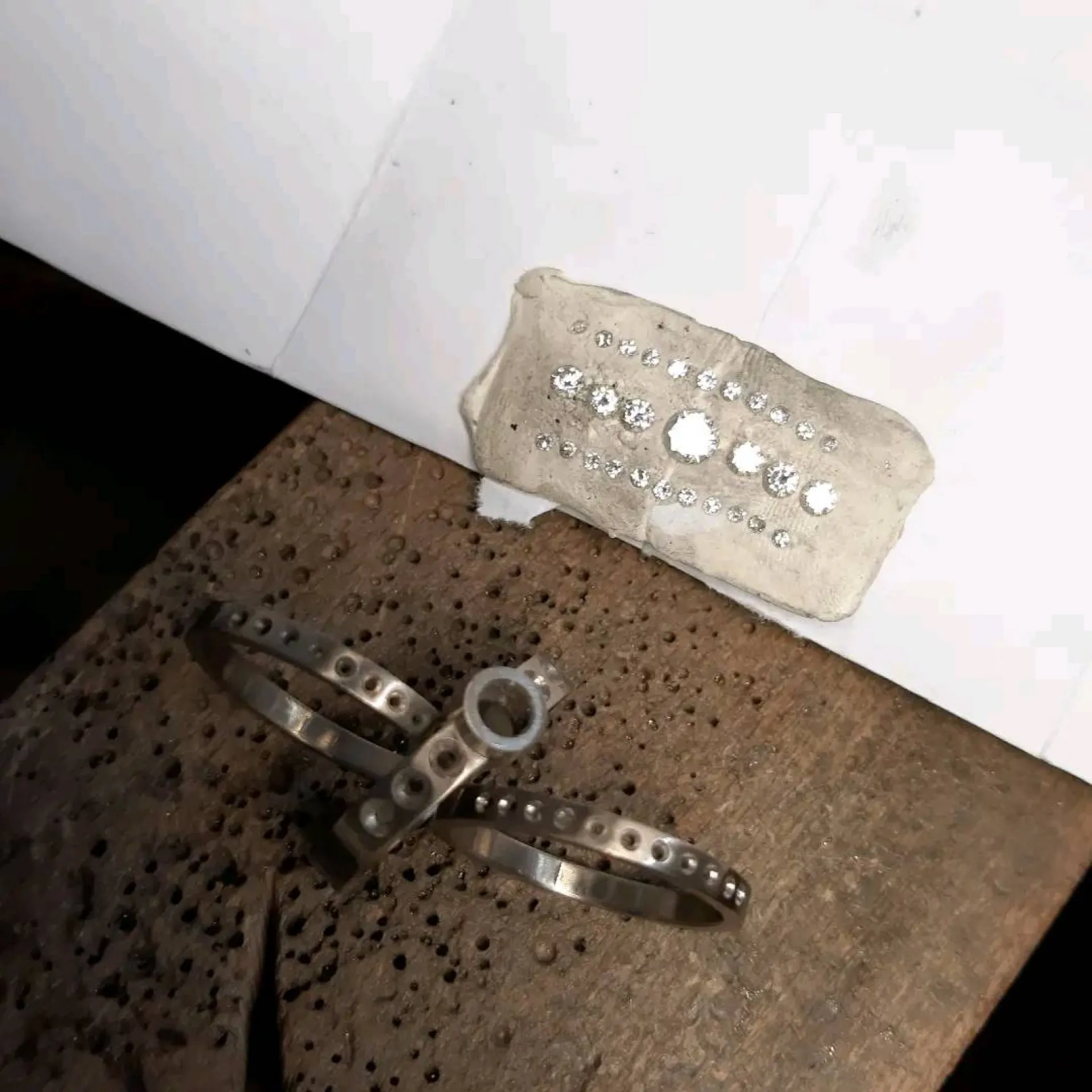 Voici quelques étapes de la fabrication d'une bague en or gris 18ct et diamants. De la fonte de l'or à la bague finie vous allez découvrir presque